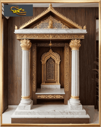 - Wooden modern style mandir is created inspired by real Hindu temples.