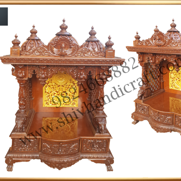 • Wooden mandir is created inspired by real Hindu temples.