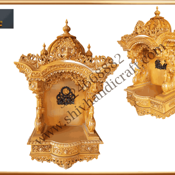 • Wooden mandir is created inspired by real Hindu temples.