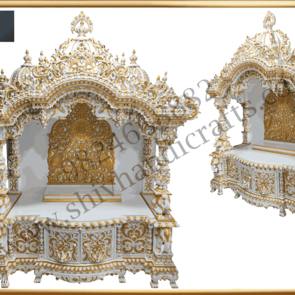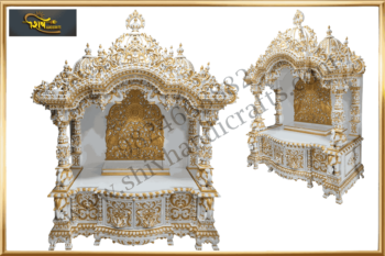 - Wooden mandir is created inspired by real Hindu temples.